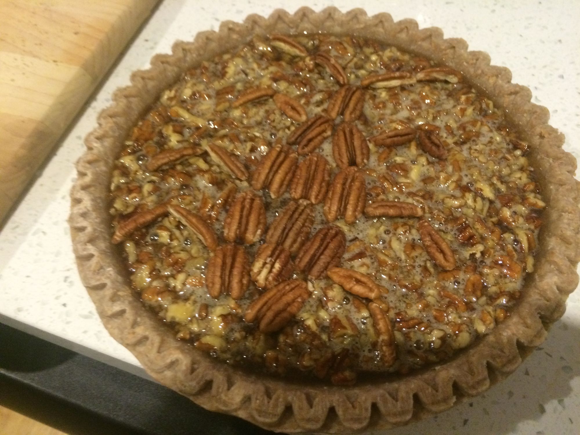 My pie's filling recipe is based on the Food Network's Pecan Pie Recipe—no need to reinvent the wheel. In addition to the filling recipe, make sure you save 20 halved pecans per pie—I'll explain this later! Also, forget about making your own pie crust—it's a GD waste of time—just buy a premade frozen 9" one and claim that you made it.